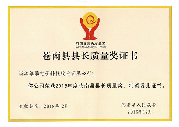 蒼南縣長(zhǎng)質(zhì)量獎(jiǎng)證書