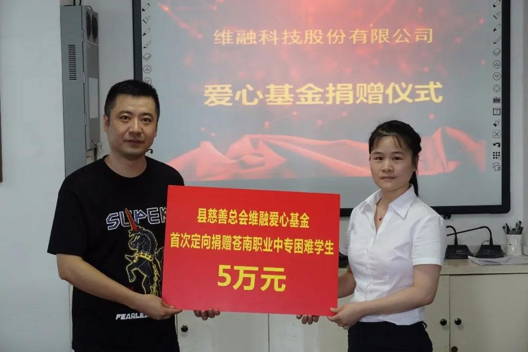 5月中旬,維融科技與蒼南縣職業(yè)中等專業(yè)學(xué)校簽訂《校企合作協(xié)議書》,雙方達(dá)成以產(chǎn)教融合模式,實(shí)現(xiàn)人才培養(yǎng)適應(yīng)維融科技發(fā)展需求。6月,經(jīng)蒼南縣維融愛心基金理事會(huì)商議、請(qǐng)示,縣慈善總會(huì)同意,將縣職業(yè)中等專業(yè)學(xué)校全體學(xué)生納入“蒼南縣維融愛心基金”幫扶范圍內(nèi)。